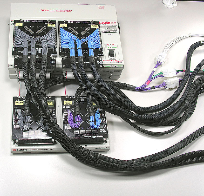 This shows the complete setup using the CB30 board pictured above. You see a 384-point CableEye system with two CB30s using the first 256 test points and two CB8 boards (Item 738) using the last 128 points. Note that the CB8 boards are mounted in a QuickMount housing (Item 712).